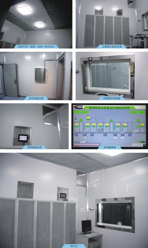 3、净化精密空调:包含组合式空调机组,转轮除湿机组,特制送风吊顶层,微孔板送回风口。